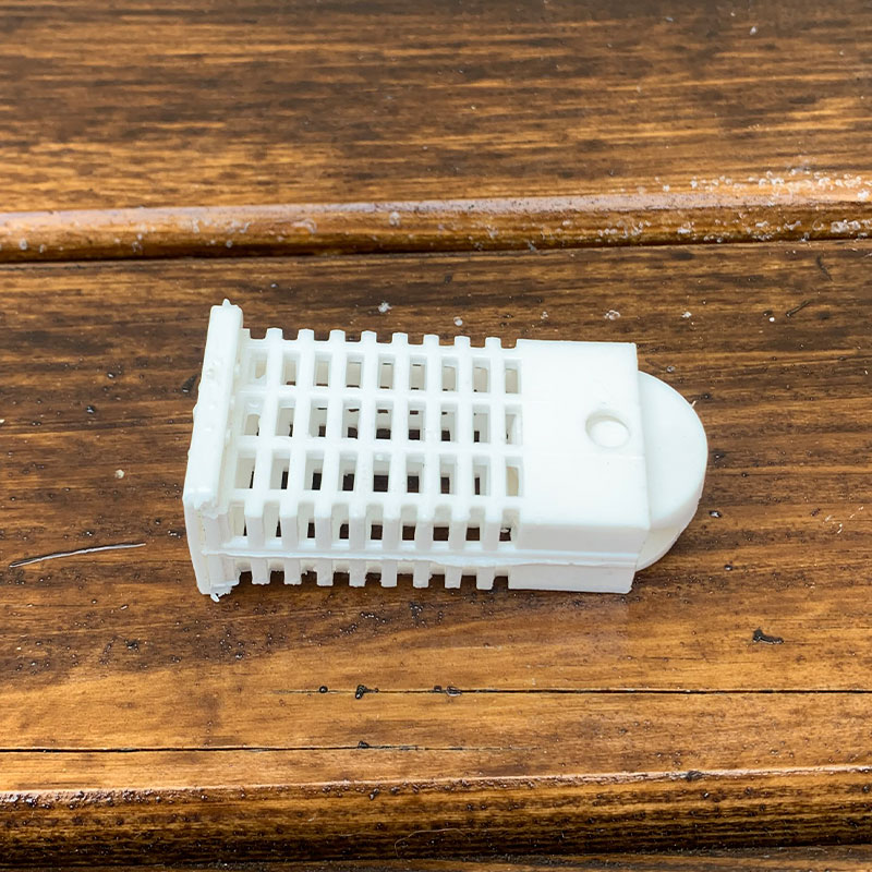 Клеточка состоит из корпуса, колодочки, крышки. В колодочке имеются отверстия для прохода пчел и закрепления корма. Крышка смещается относительно корпуса, открывая при этом основной проход во время подсадки матки. Все детали клеточки сделаны из пластмассы (полиамида).