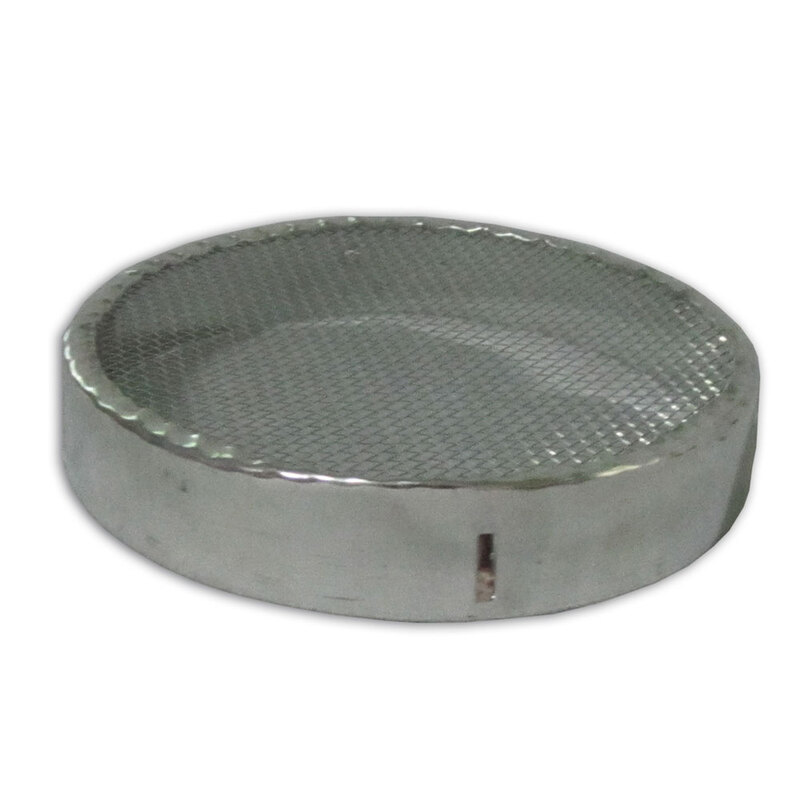 Колпачок круглый металлический на 120 мм предназначен для подсадки маток непосредственно на сот в гнезде, для временной изоляции матки при переносе, а также для совмещения или объединения двух роев.