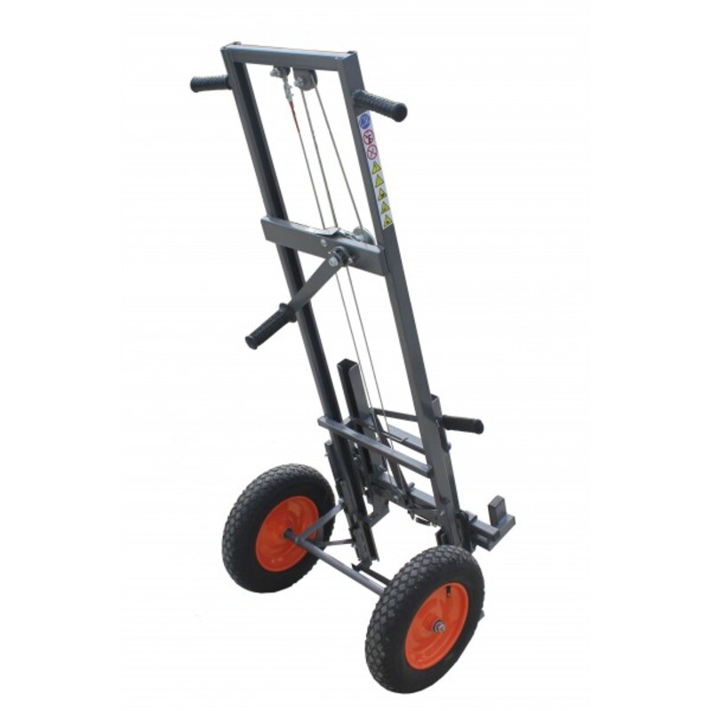 Тележка оборудована универсальным зажимом, который позволяет работать со всеми размерами и типами ульев. В тележке задействован храповой механизм подъема с фрикционным тормозом, что обеспечивает плавность подъема и опускания груза.