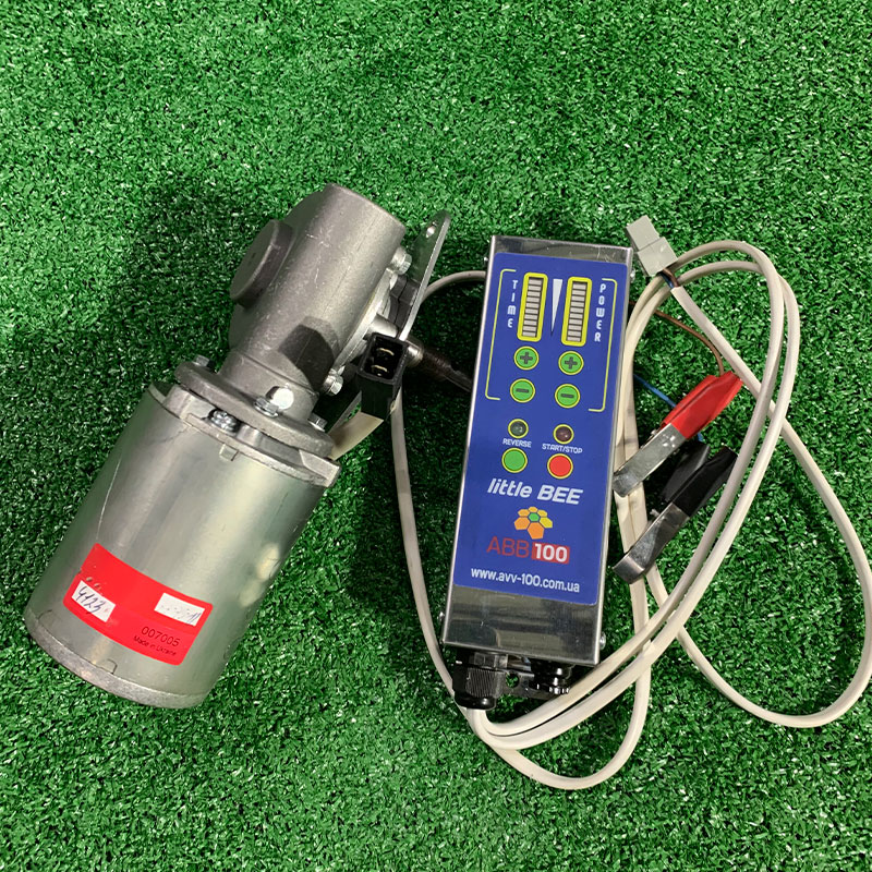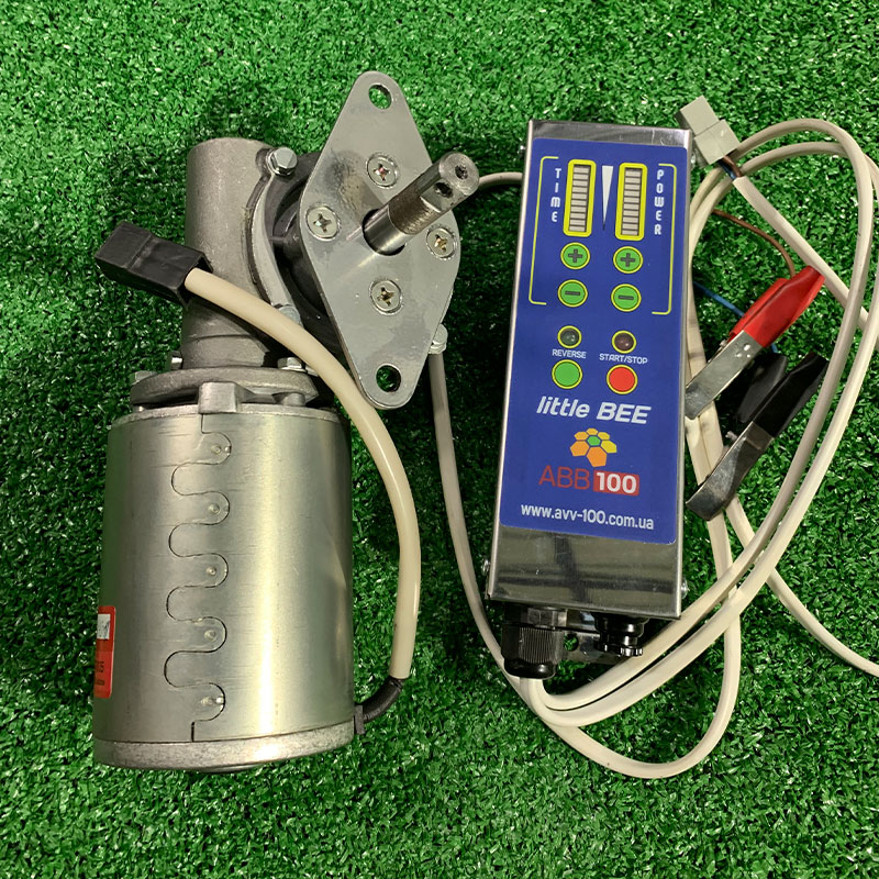 Привід медогонки електричний (далі електропривід) призначений для механізації процесу відкачування меду. Повністю взаємозамінний з ручними приводами медогонок, вироблених ТОВ «АВВ-100». Полегшує працю бджоляра, а також збільшує продуктивність його праці. Живлення електропривода здійснюється від акумуляторної батареї напругою 12В, або від мережі 220В через спеціальний блок живлення. Електропривід складається з мотор-редуктора та пульта управління.