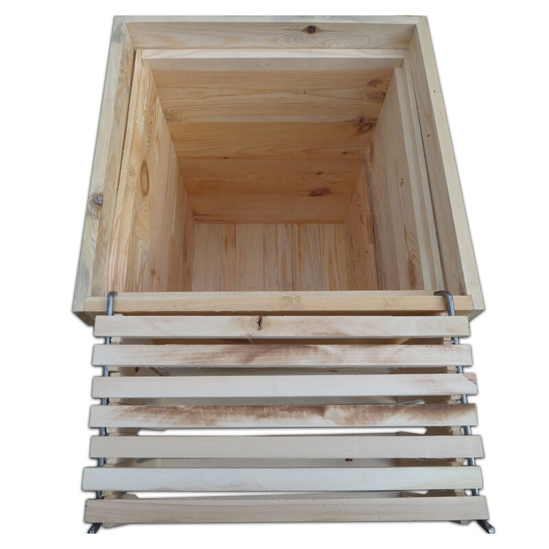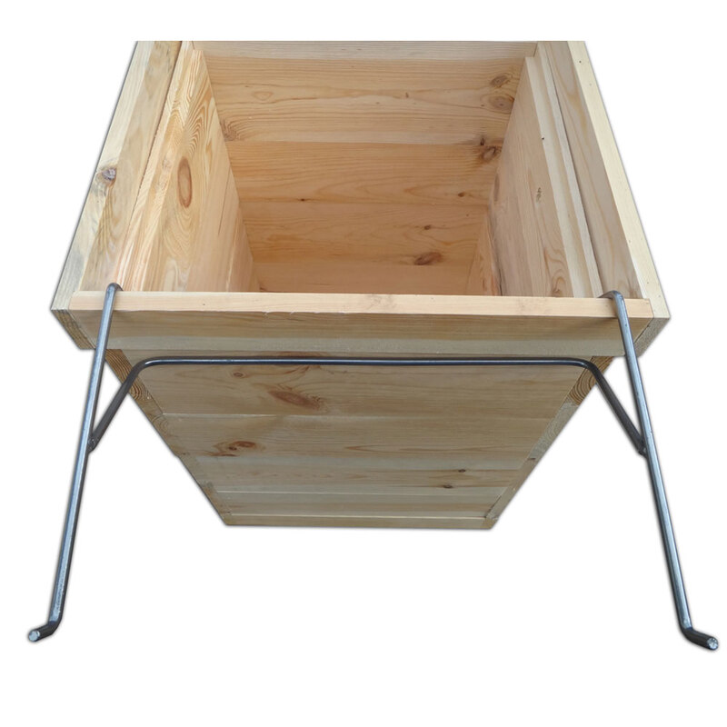 Навесной кронштейн изготовлен из стальных прутьев (диаметром 8 мм) и окрашен порошковой краской. Конструкция очень удобна в использовании и легко выдерживает 4 медовых рамки.