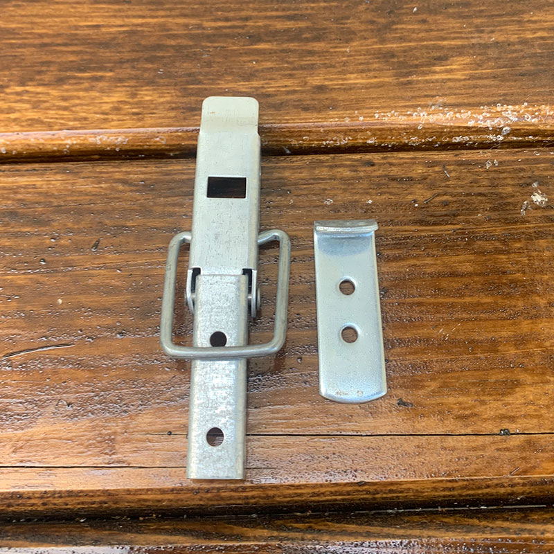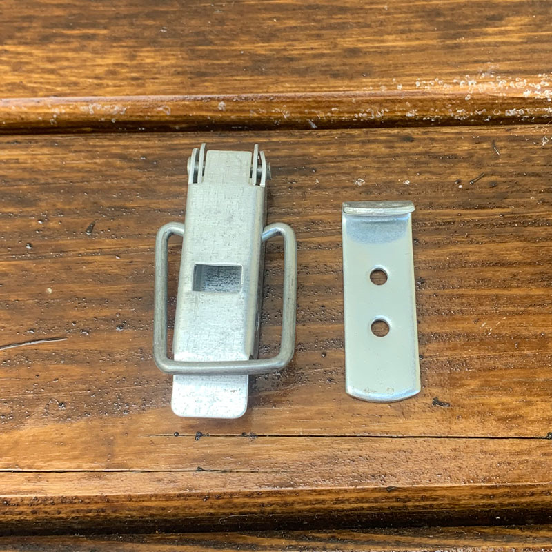 Скреп ульевой предназначен для скрепления частей ульев при перевозках. Состоит из защелки с петлей и крючка.