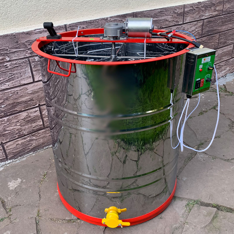 Медогонка полуавтоматическая нержавеющая 6 рамок, с ременным электроприводом 12В.