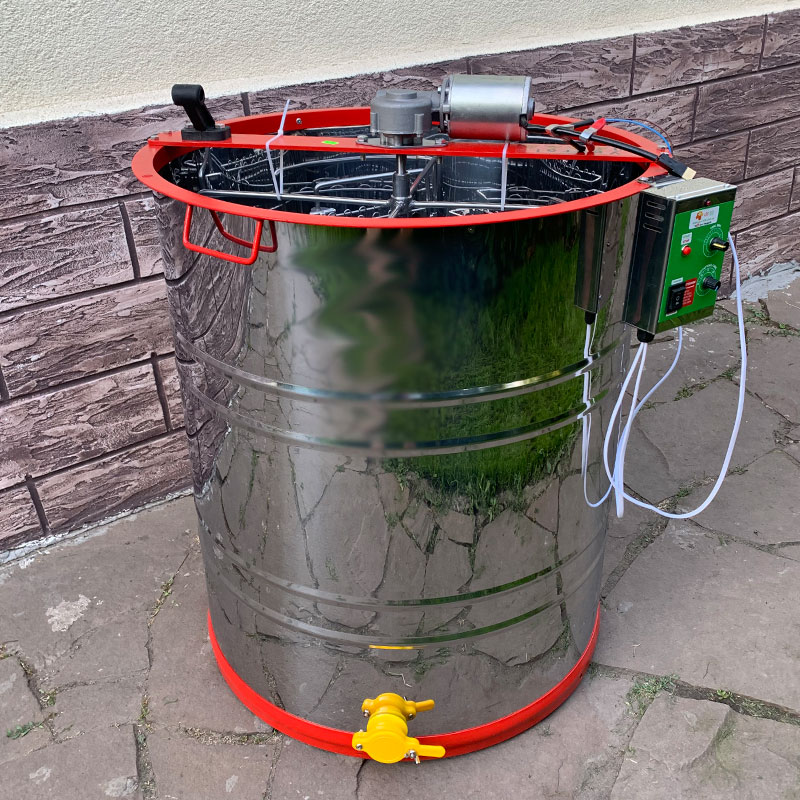 Медогонка полуавтоматическая нержавеющая 6 рамок, с ременным электроприводом 12В.