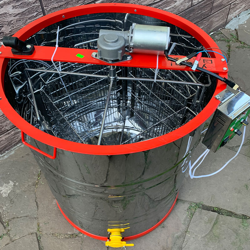 Медогонка 4х рамочная поворотная нержавеющая сталь Aisi430 с Эл. приводом 220в 100 ват кран пласт.