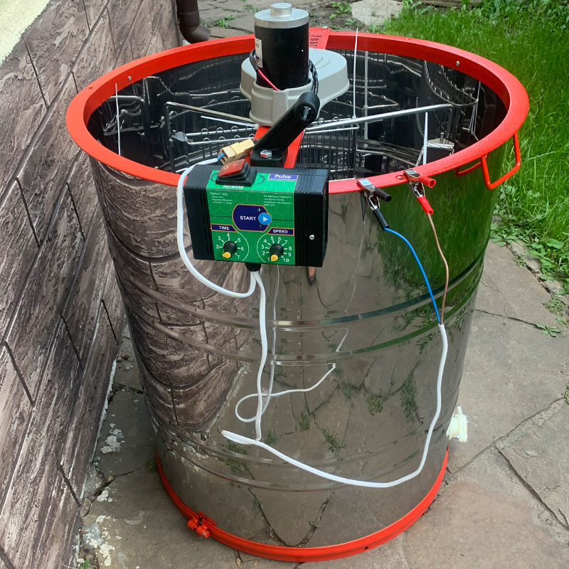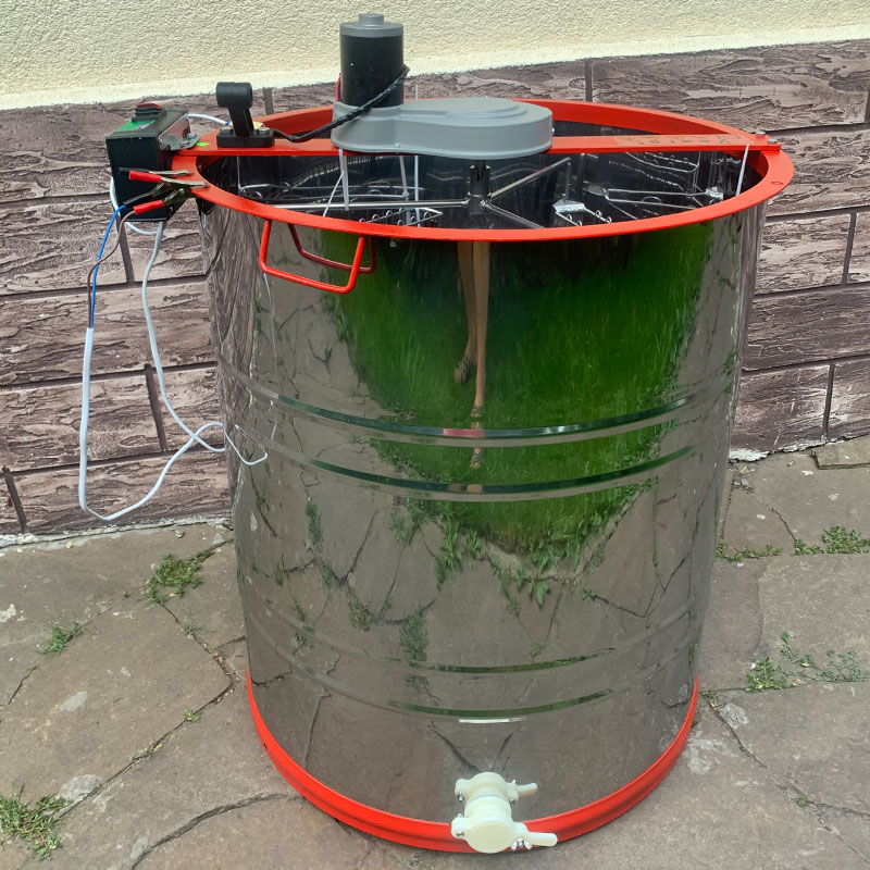 Медогонка на 4х рамочная поворотная нержавеющая Aisi430, кассета и ротор окрашенные порошковой краской, кассета сварная кран пластик.