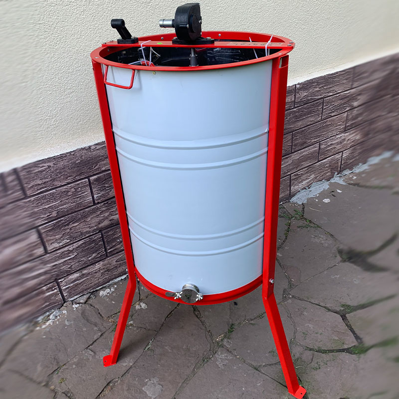 Медогонка полуавтоматическая нержавеющая 6 рамок, с ременным электроприводом 12В.