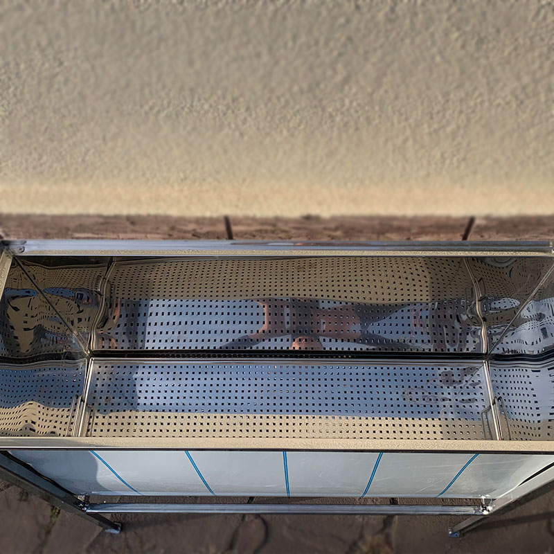 Стіл для розпечатування сот призначений для створення найбільших зручностей працюючому під час розпечатування соторамок простими пасічними, паровими або віброножами. Особливістю даної конструкції є висувні ніжки, з допомогою яких висота столу може регулюватися в певних межах під зріст працюючого. Складається з бака, кошика, каркаса і дерев'яної поперечини з голкою. Стіл може комплектуватися додатково підставкою для розпечатування рамок та кришкою(в залежності від замовлення). Бак і кошик виготовляються з нержавіючої сталі, каркас - з профільної труби. Бак виготовлений з ухилом у бік зливного крана. У верхній частині столу над кошиком встановлюється дерев'яна поперечина з голкою або підставка для розпечатування рамок, на якій утримується соторамка при її розпечатуванні. Підготовлені до відкачування меду соторамки підвішують в баку, починаючи від протилежного торця. Мед стікає зі зрізів соторамок і забрусу по днищу в бік крана.