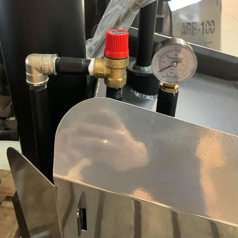 При необходимости доливки воды в котел надо предварительно сбросить давление пара в системе с помощью предохранительного клапана. Во избежание получения ожога паром, пробку надо открывать не спеша, сбрасывая при этом пар. В процессе работы необходимо следить за показаниями манометра; в случае повышения давления свыше 0,5 кг/см2 немедленно прекратить работу парогенератора, потушив при этом огонь в топке и сбросив давление, после чего открыть пробку котла. ;